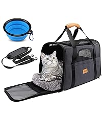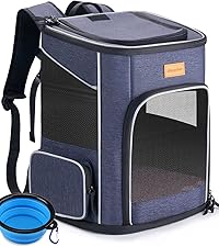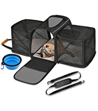PRACTICAL AND PORTABLE: The size of this product is 42.9 x 30 x 33cm(16.9"1.8"x 13"). Recommended for pets up to 7kg/15 lbs. Please measure your pet's size and reserve extra space leave for your pets before purchase, in case the carrier is not fixed for your pet. It comes with a folding blue bowl and a soft cushion inside the bag.